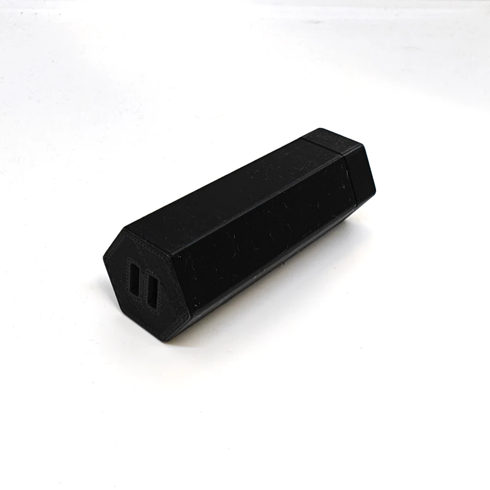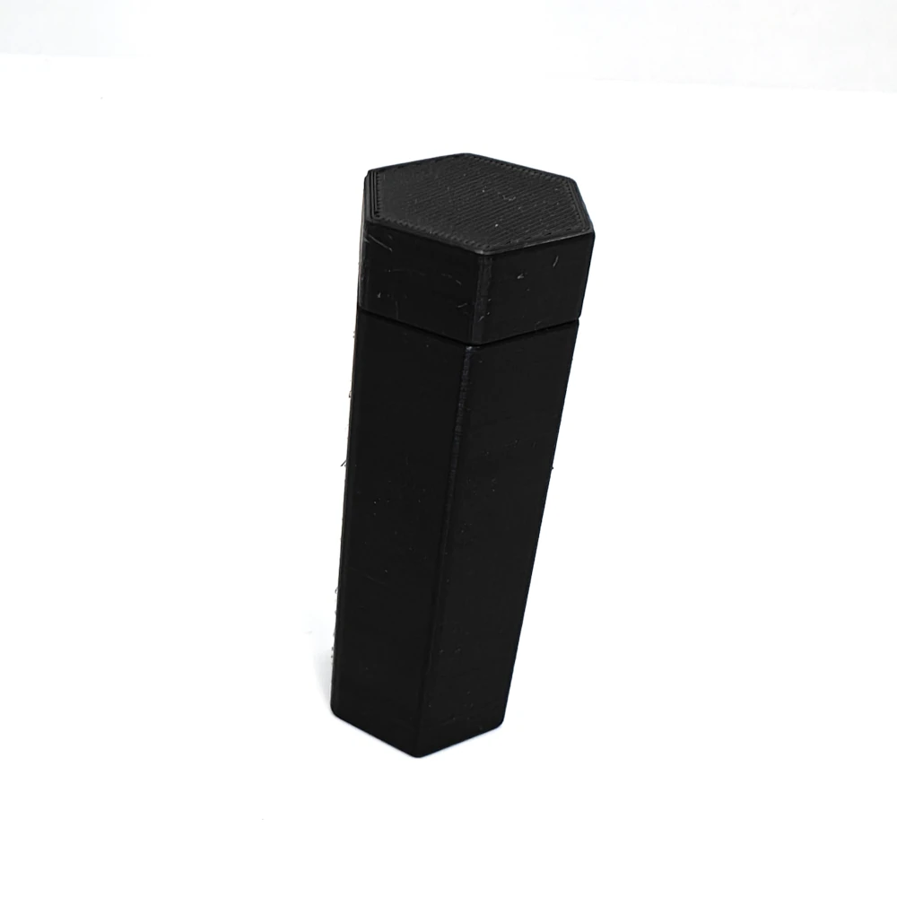 The labyrinth cache is a puzzle cache where you need to figure out how to separate its two parts. Inside the labyrinth cache is a Bison capsule containing one roll of waterproof log paper. One end of the cache has a recessed loop, allowing you to hang it from a tree branch using fishing line or similar. Printing material: PLA plastic.