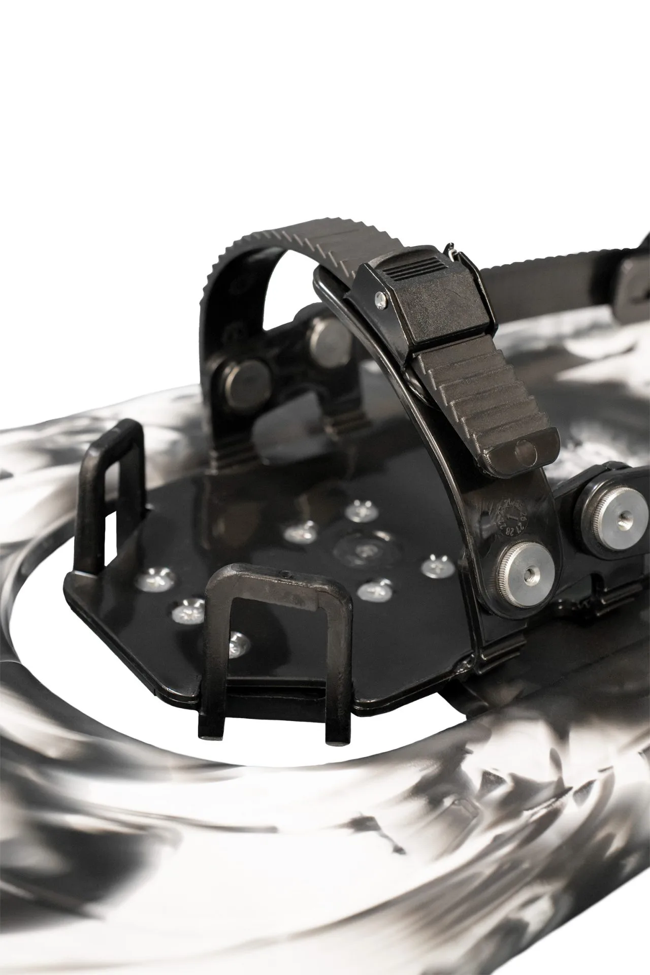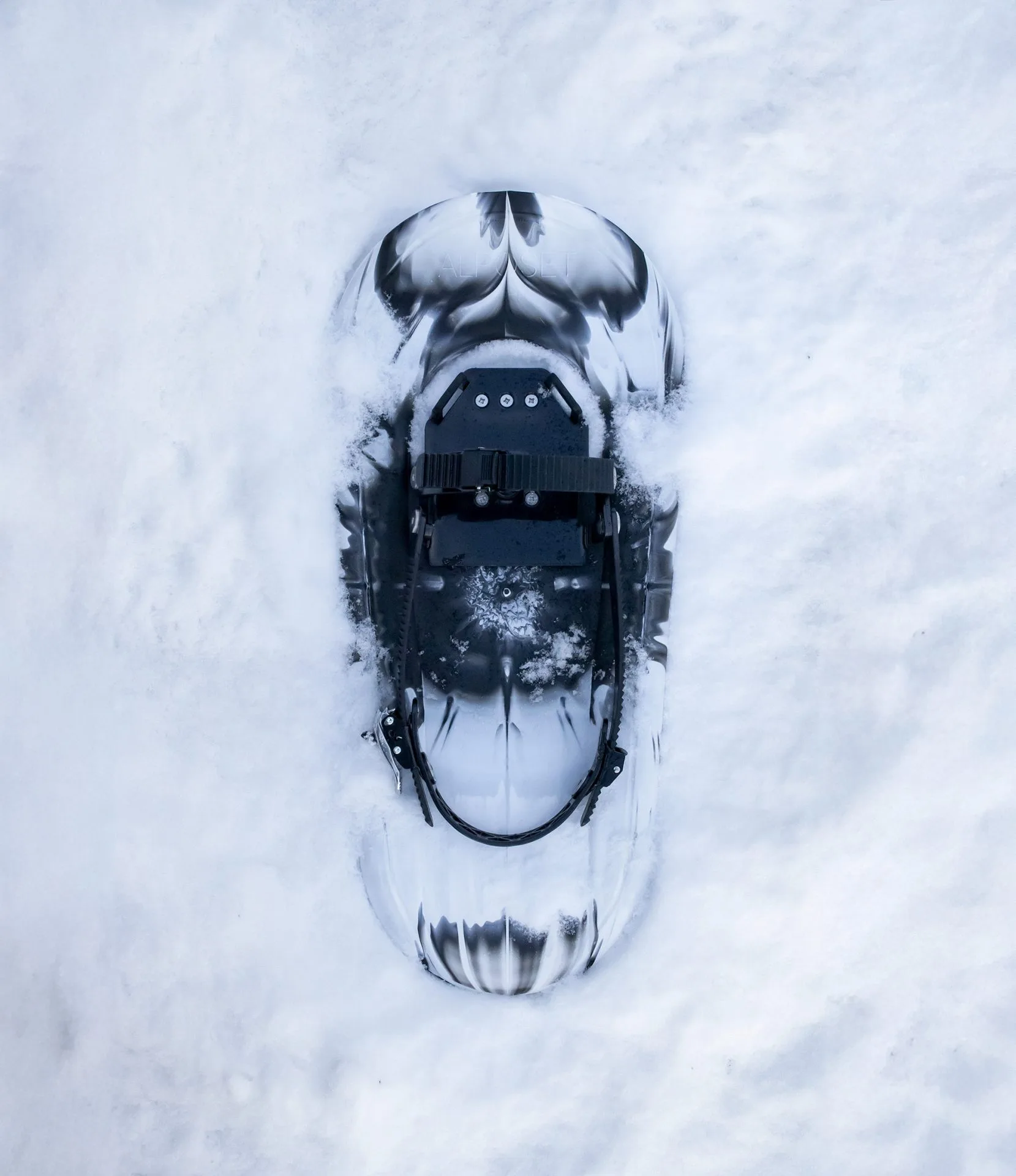 Alposet-lumikenkien side on suunniteltu helppokäyttöiseksi ja lähes kaikkiin kenkiin sopivaksi. Siteissä on reilusti säätövaraa, joten kengät sopivat niin lapsille kuin aikuisillekin. Saranoitu side estää lumen kertymisen kengän päälle ja sallii luonnollisen jalan liikkeen kävellessä.