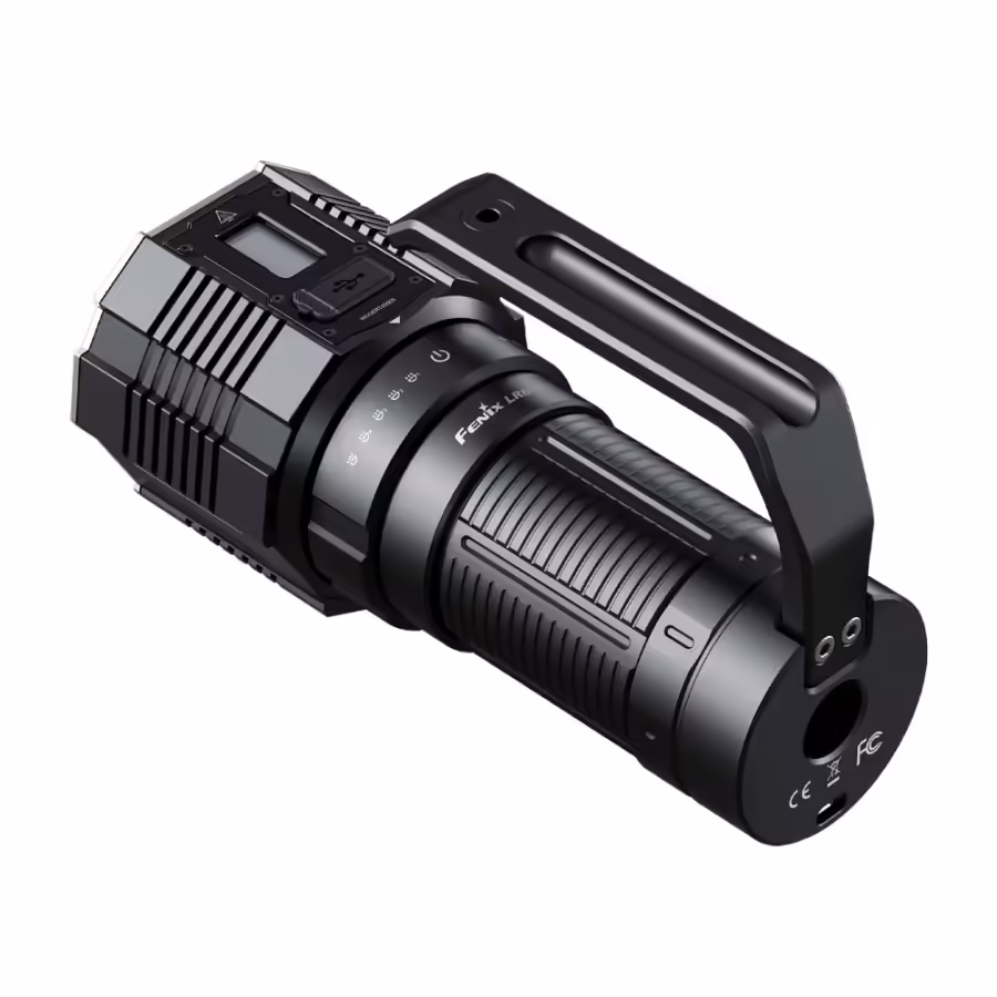 - Pakkaus sisältää: Fenix LR60R hakulamppu, ARB-L56-4000 mAh 14.4 V Li-ion akkupaketti, USB C -latauskaapeli, rannehihna, olkahihna, metallinen ripustuslenkki, vaihdettava O-rengastiiviste, käyttöohje.