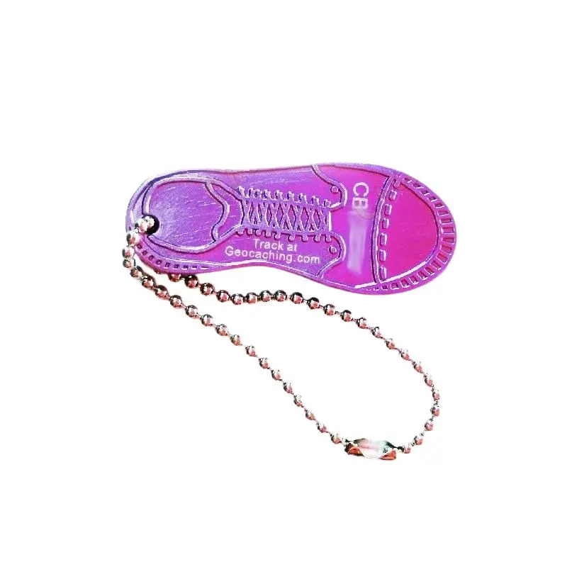 Pieni Geokenkä -travel tag, joka haluaa jättää kengän jälkensä ympäri maailmaa.