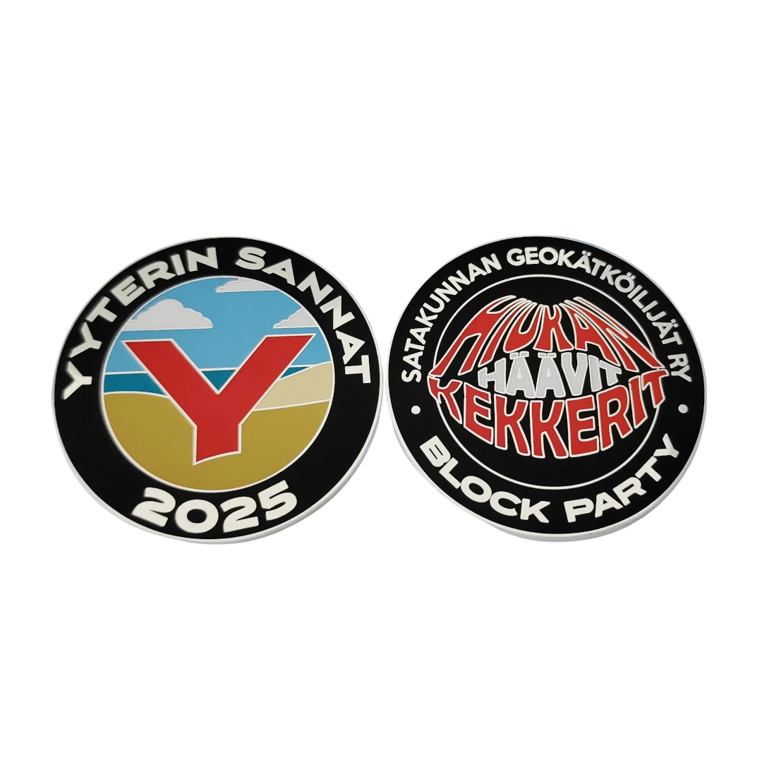 Geokolikon etupuoli on kokonaisuudessaan tapahtuman logo. Yyterin sannoilla seisoo Porin punainen Y. Ulkoreunalla kulkee teksti YYTERIN SANNAT 2025.
